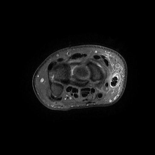 Bitte befunden und beurteilen Sie die vorliegende MRT des Handgelenks. Anamnese: Handgelenksschmerzen radialseitig.