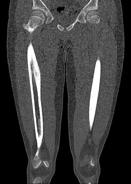 Worum handelt es sich bei der Knochenläsion am rechten Oberschenkel am ehesten? Anamnese: 12-jähriger mit nächtlichen Schmerzen des rechen Oberschenkels.
